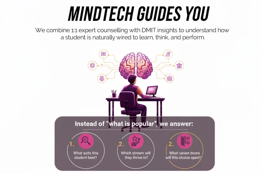 We combine 1:1 expert counselling with DMIT insights to understand how a student naturally learns, thinks, and performs.