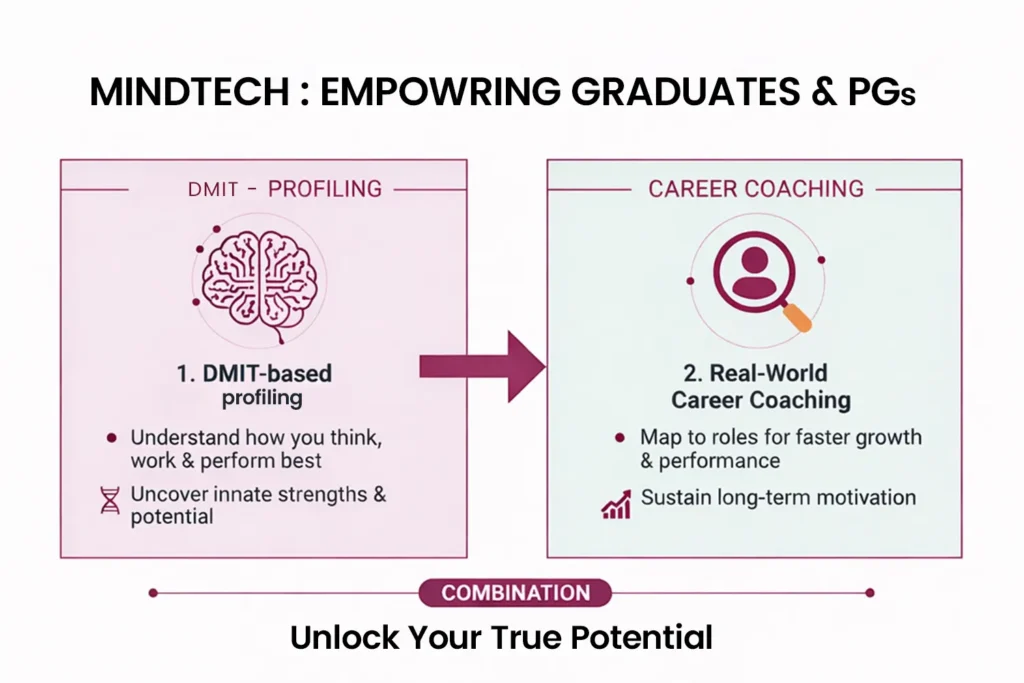 We combine DMIT-based profiling with real-world career coaching to understand how you think, work, and perform at your best. This allows us to map you to roles where you can grow faster, perform better, and stay motivated over the long term.